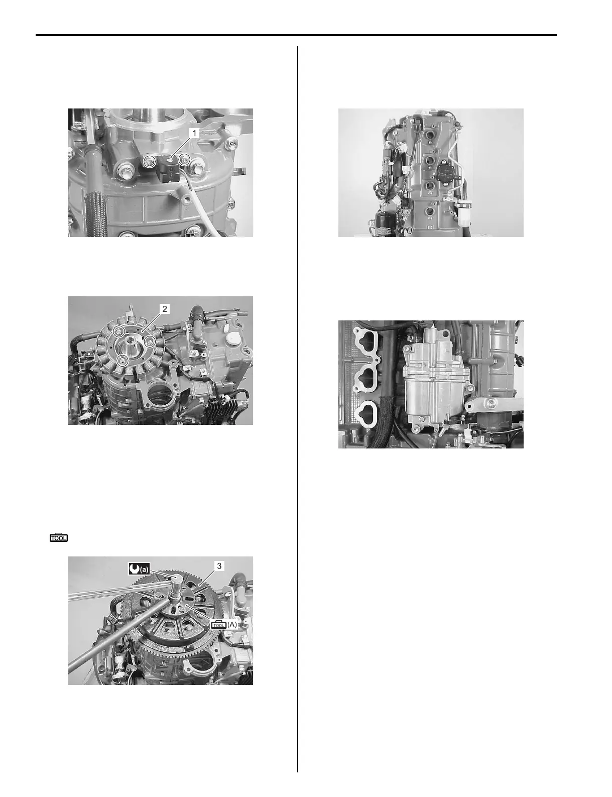 • Install flywheel (3) and tighten flywheel bolts to