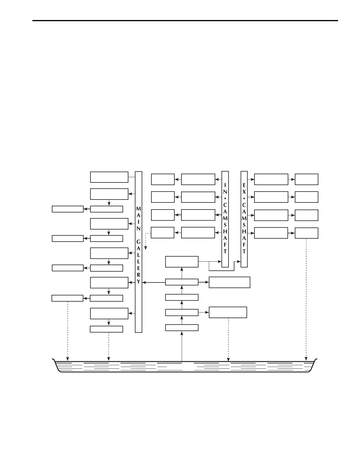From the main gallery, oil flow is directed through either drilled internal passages or by splash method to those
