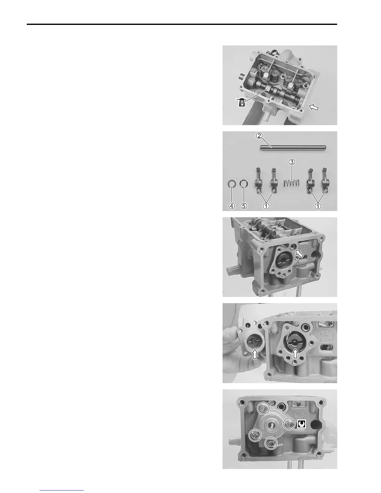 2. Install the rocker arms, rocker arm spring 3, washer 4,