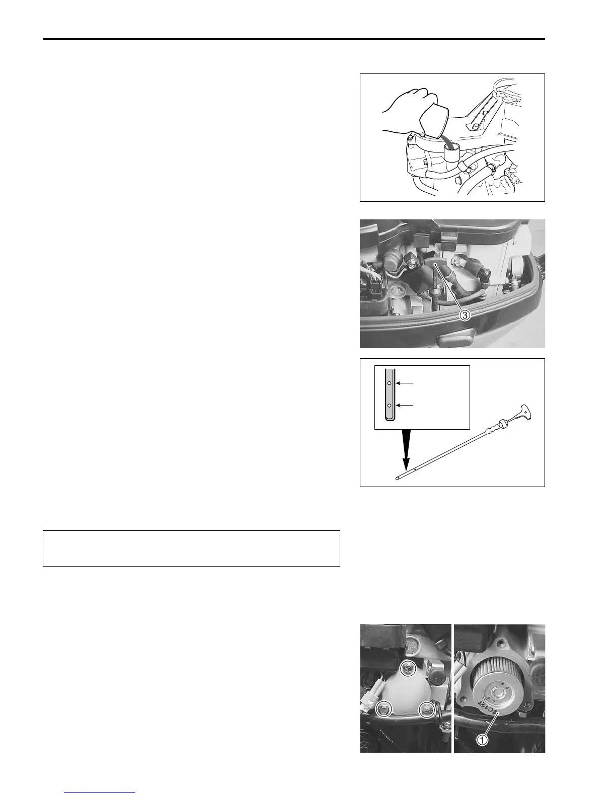 8. Remove the oil level dipstick 3 and wipe it clean.