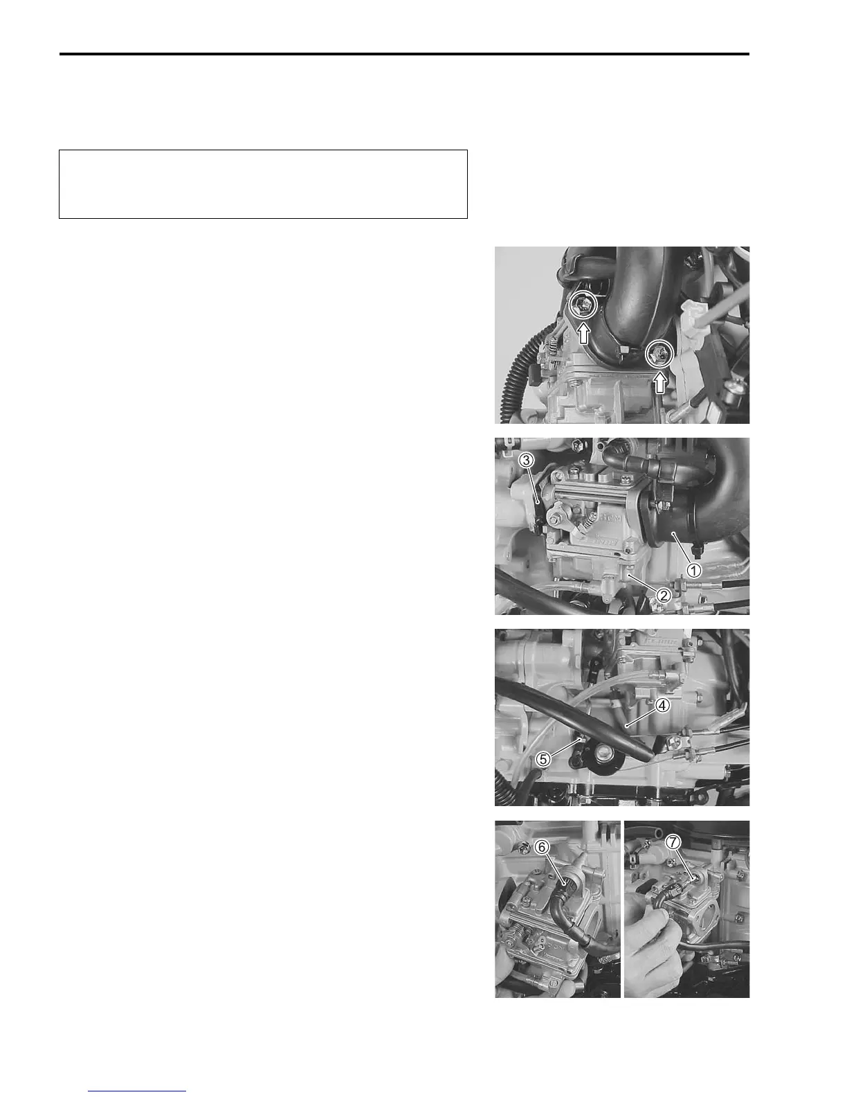 3. Remove the silencer case 1, carburetor 2 and insulator 3.