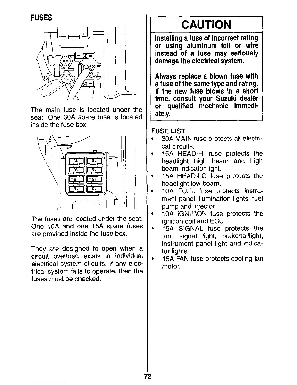 seat. One 30A spare fuse is located