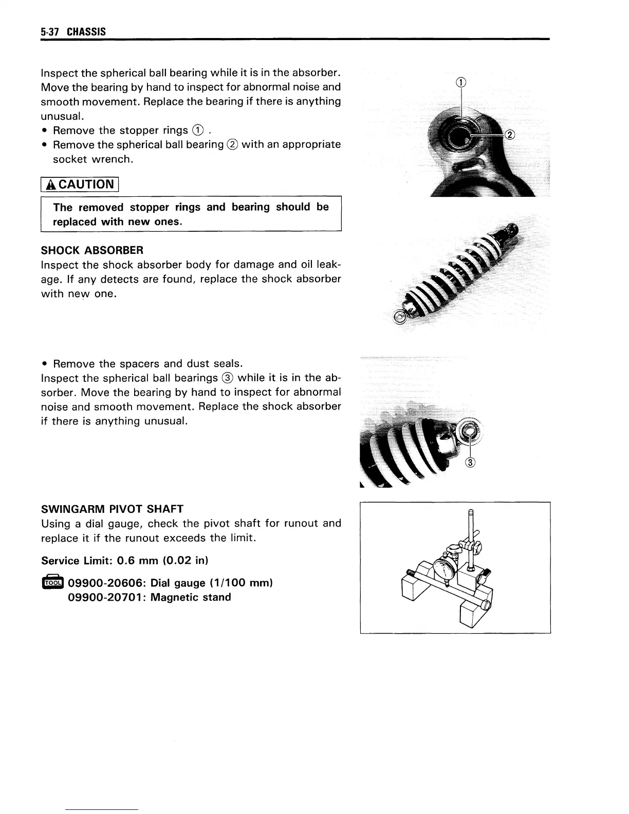 Suzuki DR200SE - Shock Absorber Inspection; Swingarm Pivot Shaft Inspection