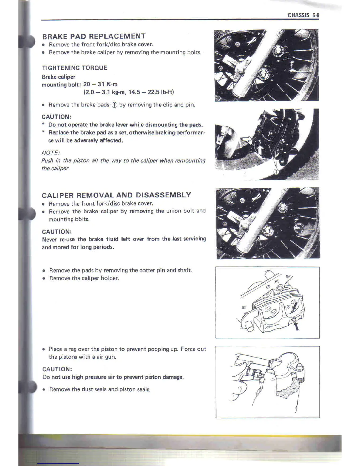 Suzuki DR650S - Brake Pad Replacement; Caliper Removal and Disassembly