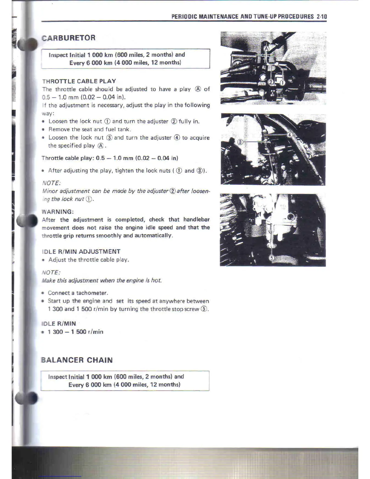 Suzuki DR650S - Carburetor; Throttle Cable Play; Idle R;Min Adjustment; Idle R;Min