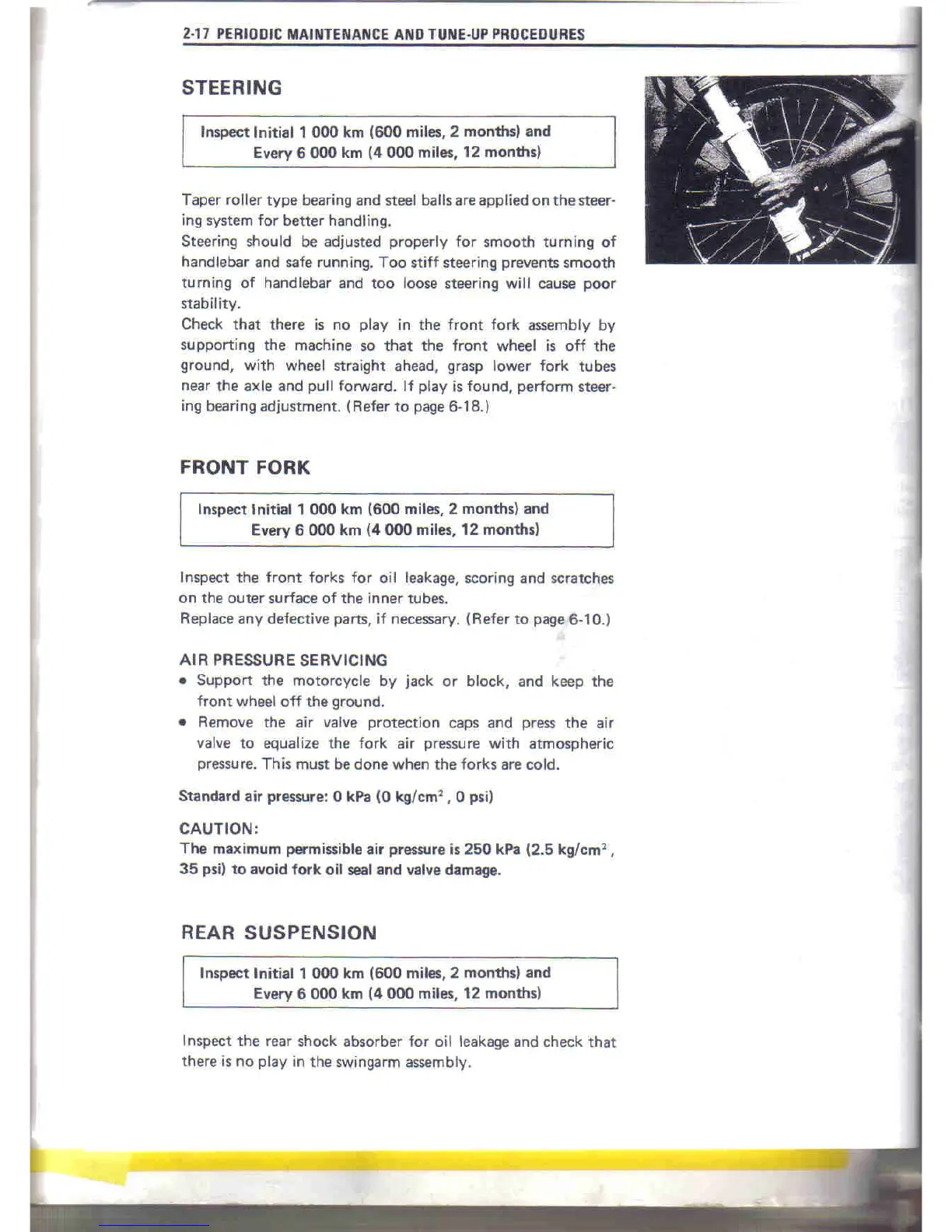 Suzuki DR650S - Steering; Front Fork; Rear Suspension; Air Pressure Servicing
