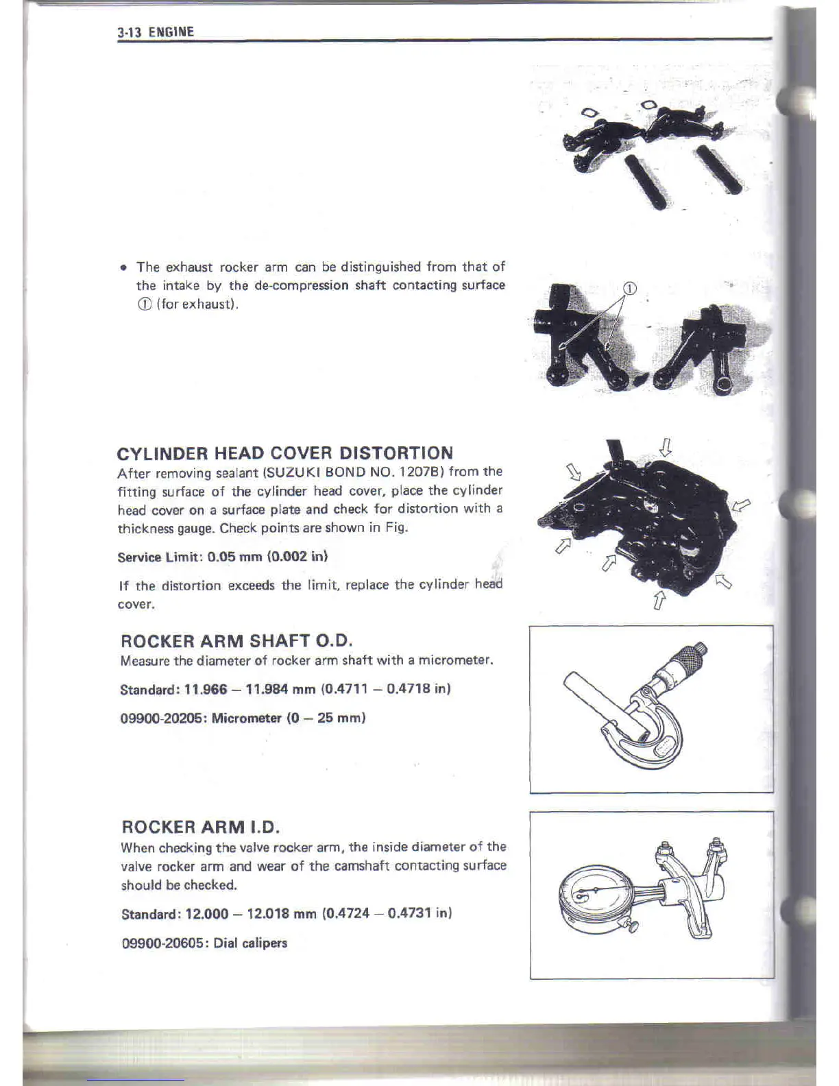 Suzuki DR650S - Cylinder Head Cover Distortion; Rocker Arm Shaft O.D.; Rocker Arm I.D.