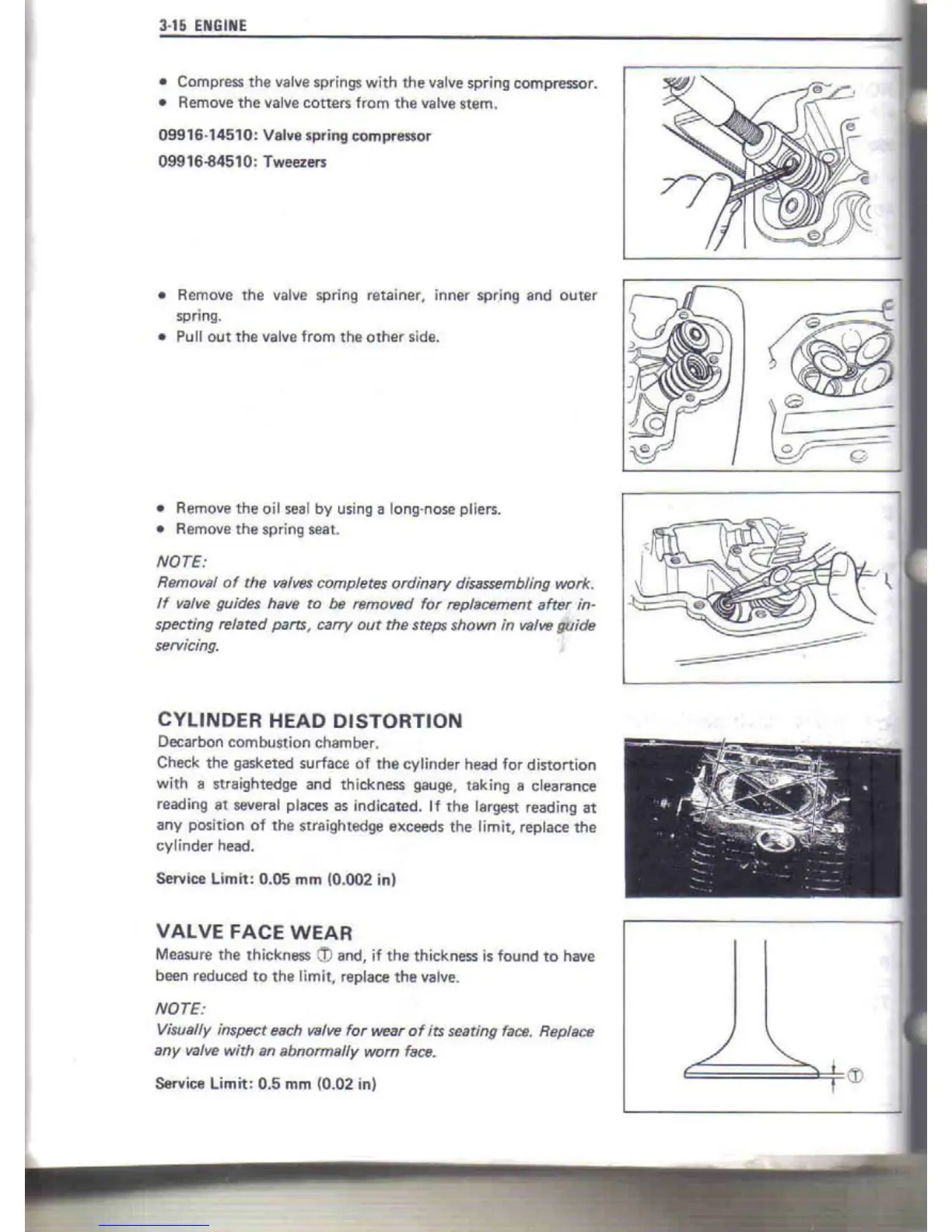 Suzuki DR650S - Cylinder Head Distortion; Valve Face Wear