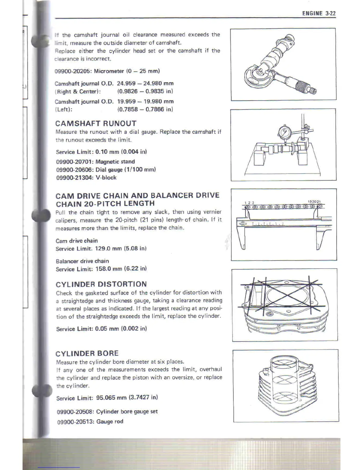 Suzuki DR650S - Camshaft Runout; Cam Drive Chain and Balancer Drive Chain 20-Pitch Length; Cylinder Distortion; Cylinder Bore