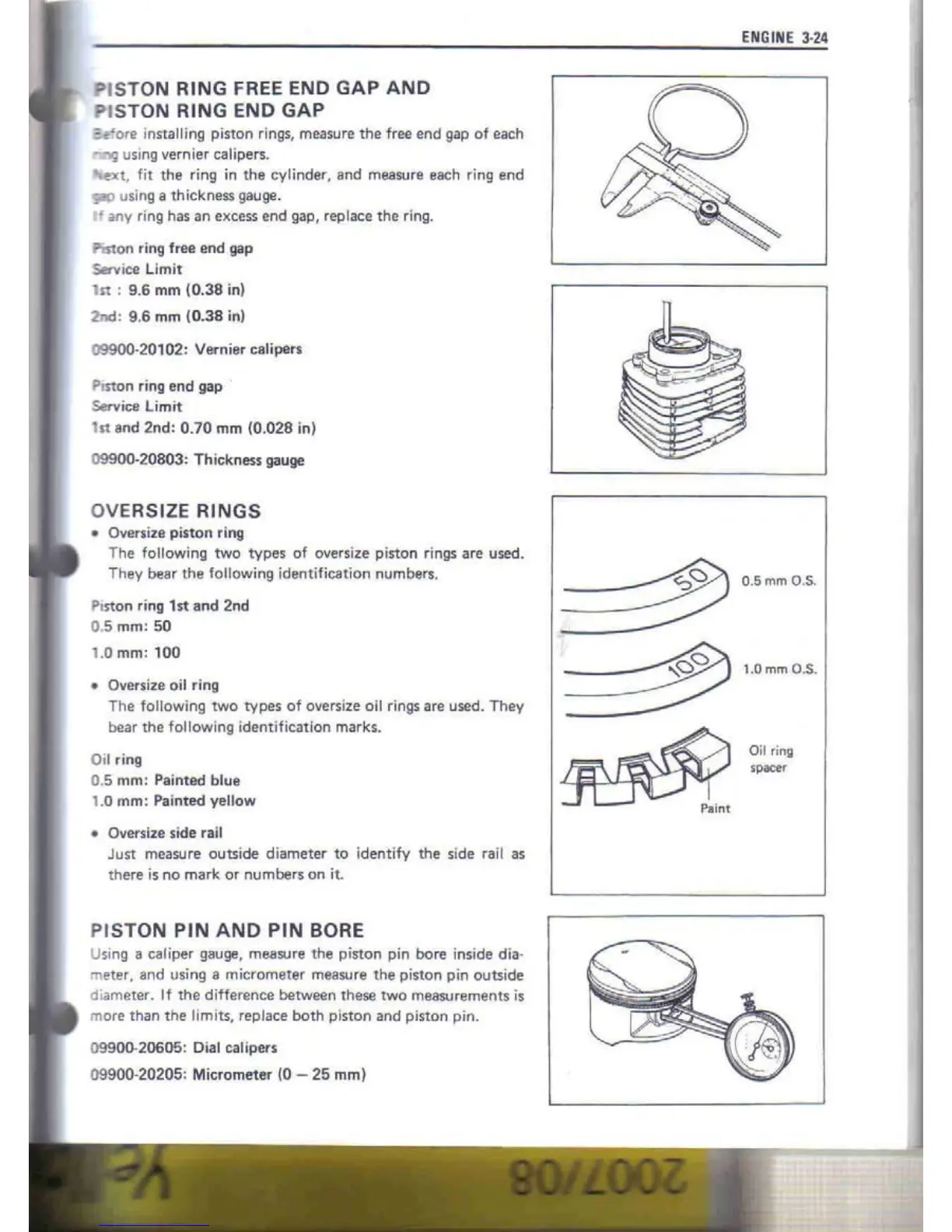 Suzuki DR650S - Piston Ring Free End Gap and Piston Ring End Gap; Oversize Rings; Piston Pin and Pin Bore