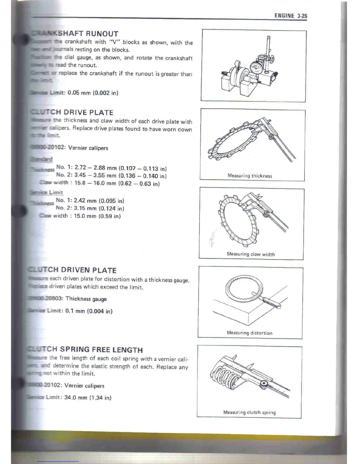 Suzuki DR650S - Crankshaft Runout; Clutch Drive Plate; Clutch Driven Plate; Clutch Spring Free Length