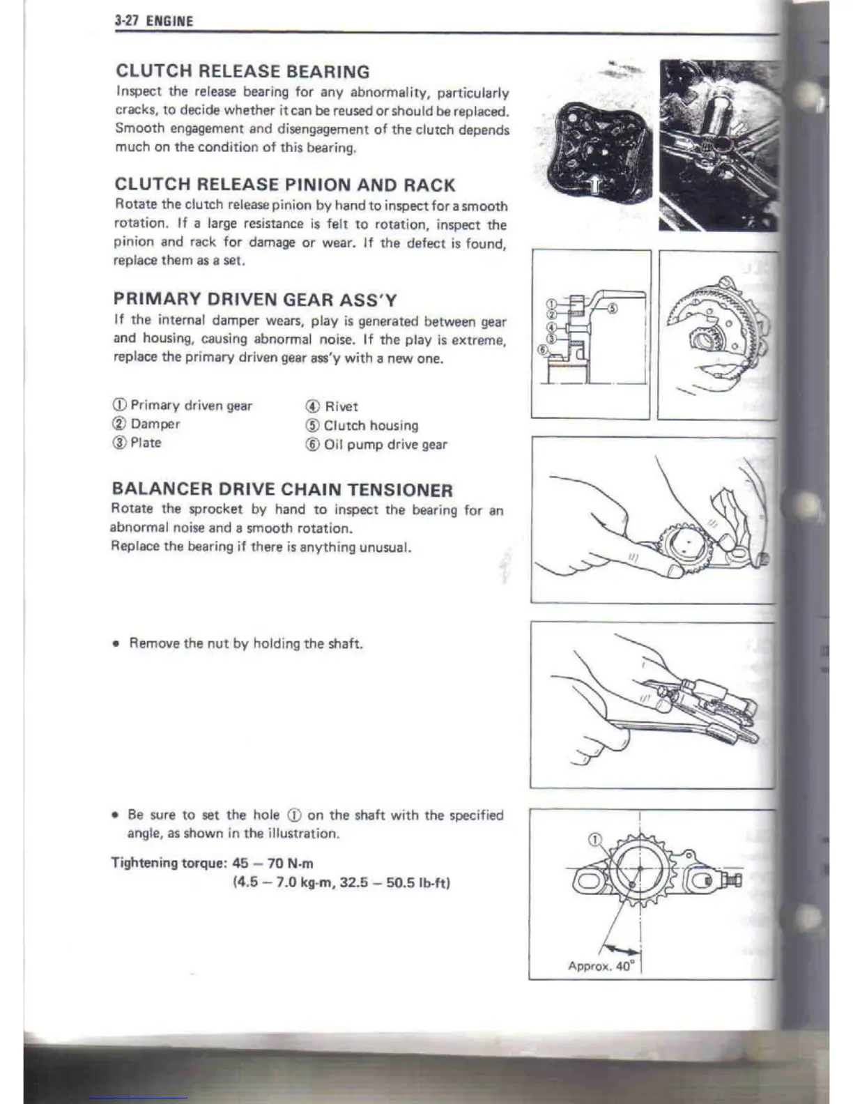 Suzuki DR650S - Clutch Release Bearing; Clutch Release Pinion and Rack; Primary Driven Gear Assy; Balancer Drive Chain Tensioner