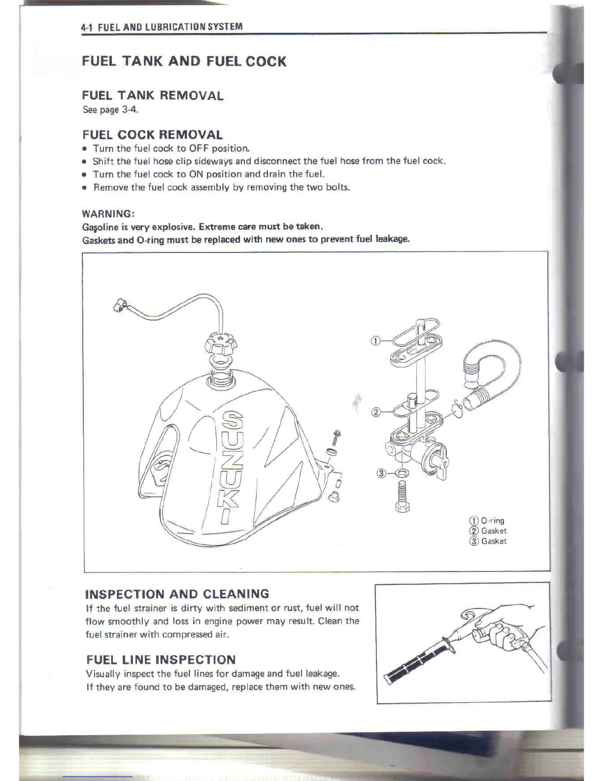 Suzuki DR650S - Fuel Cock Removal; Fuel Cock Inspection and Cleaning; Fuel Line Inspection