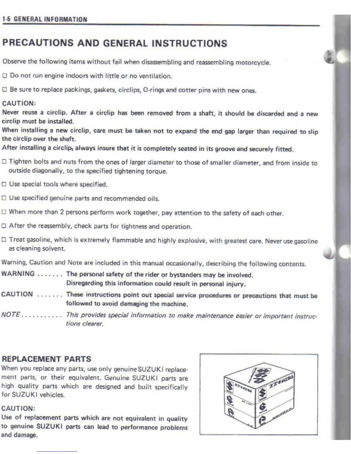Suzuki DR650S - Precautions and General Instructions; Replacement Parts