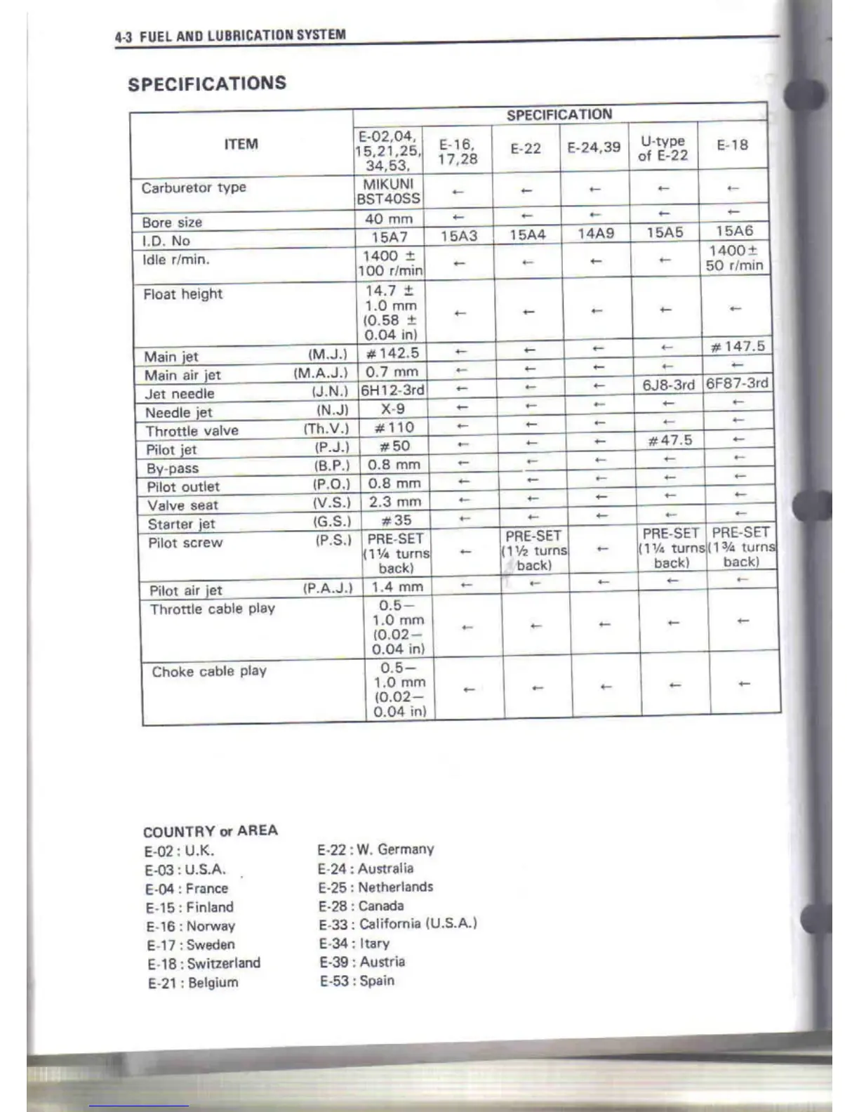 Suzuki DR650S - Carburetor Specifications