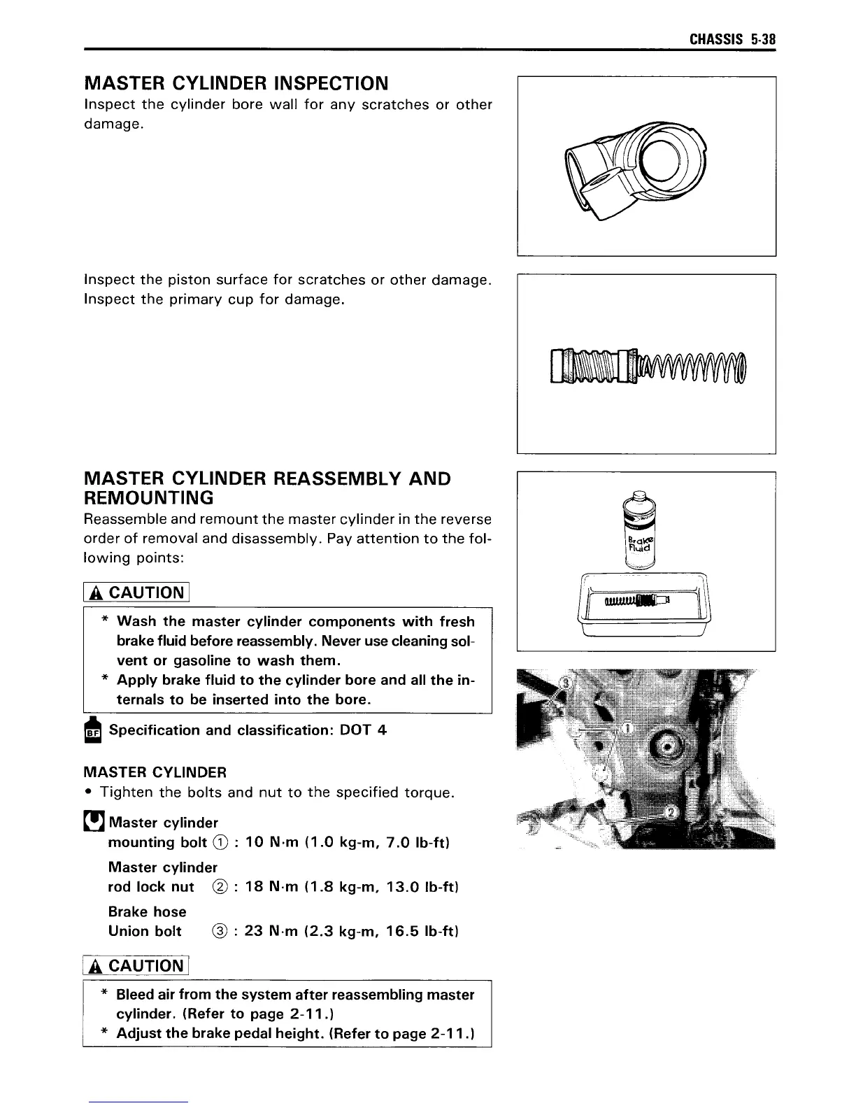 brake fluid before reassembly. Never use cleaning sol-