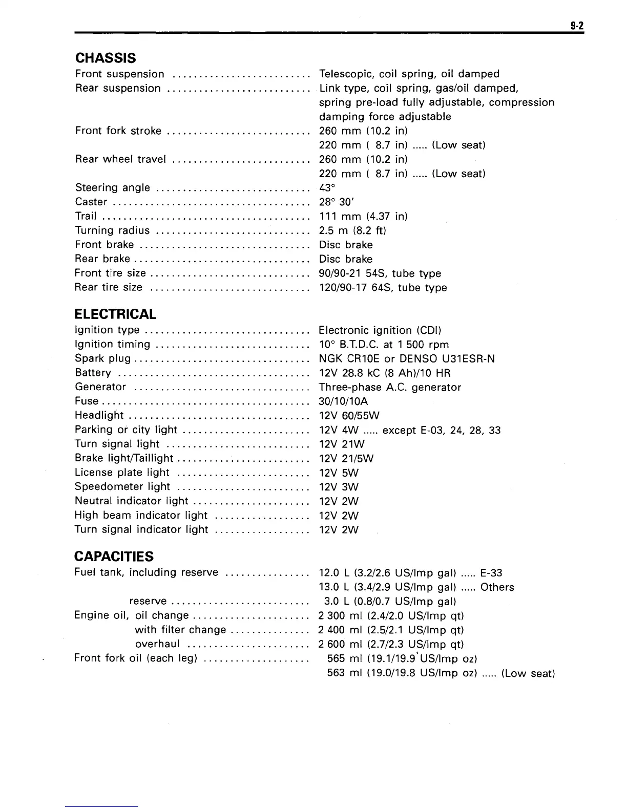12.0 L (3.2/2.6 US/Imp gal) ..... E-33
