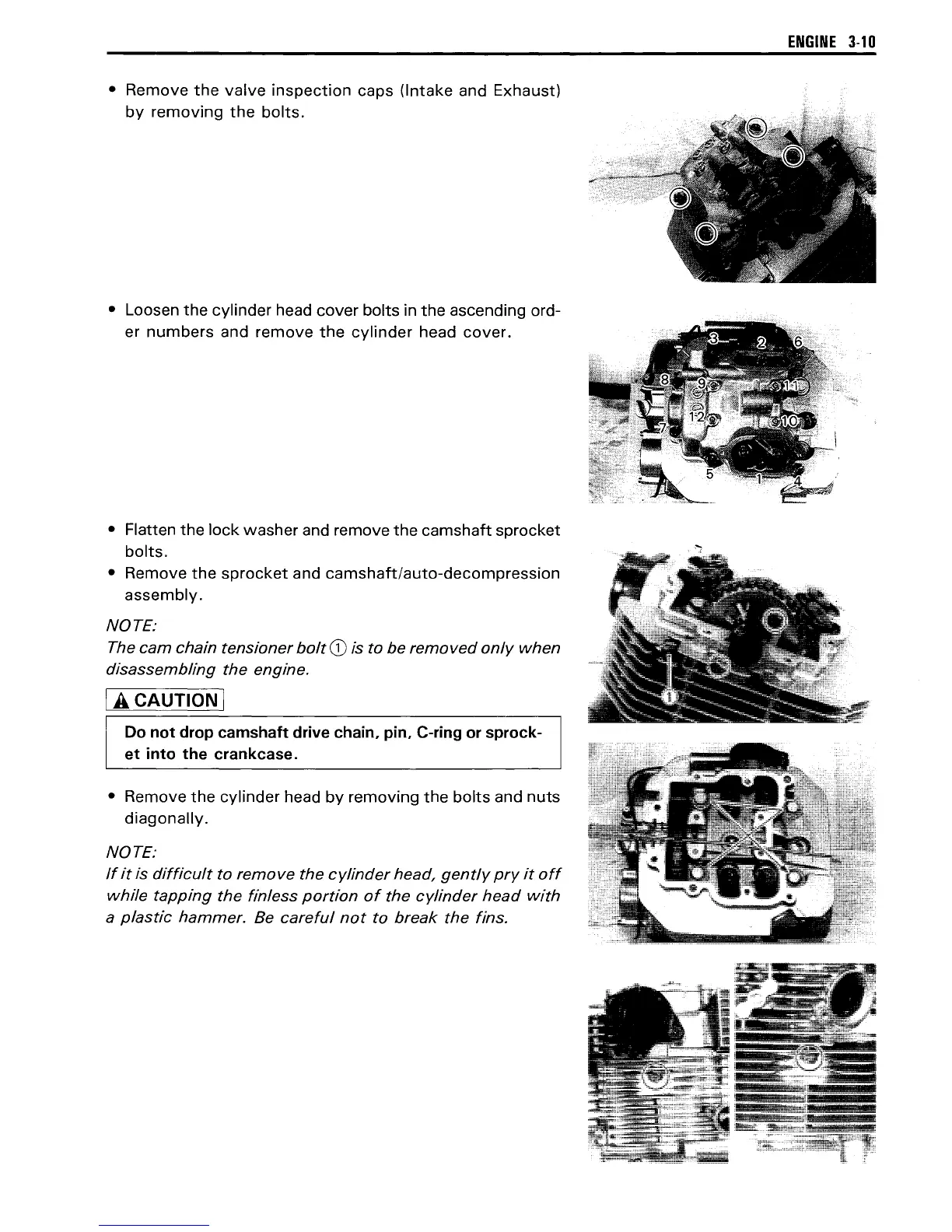 Do not drop camshaft drive chain, pin, C-ring
