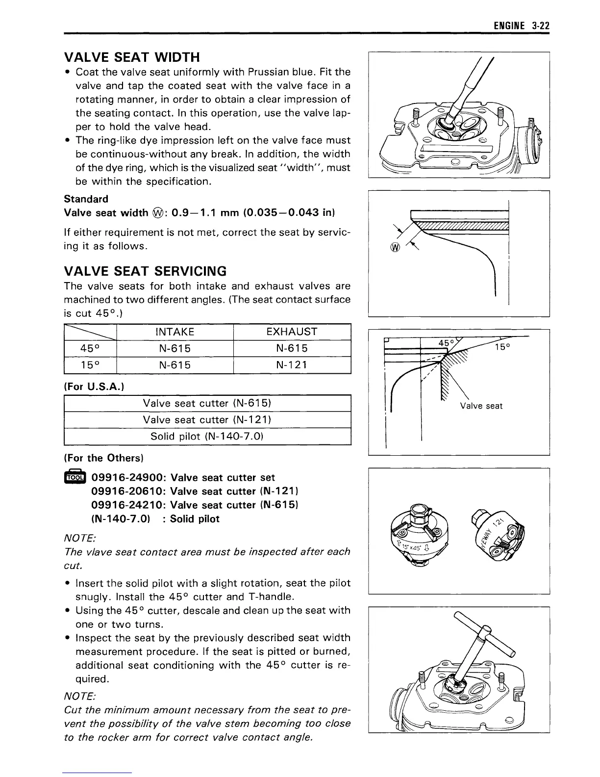 Suzuki DR650SE - Valve Seat Width; Valve Seat Servicing