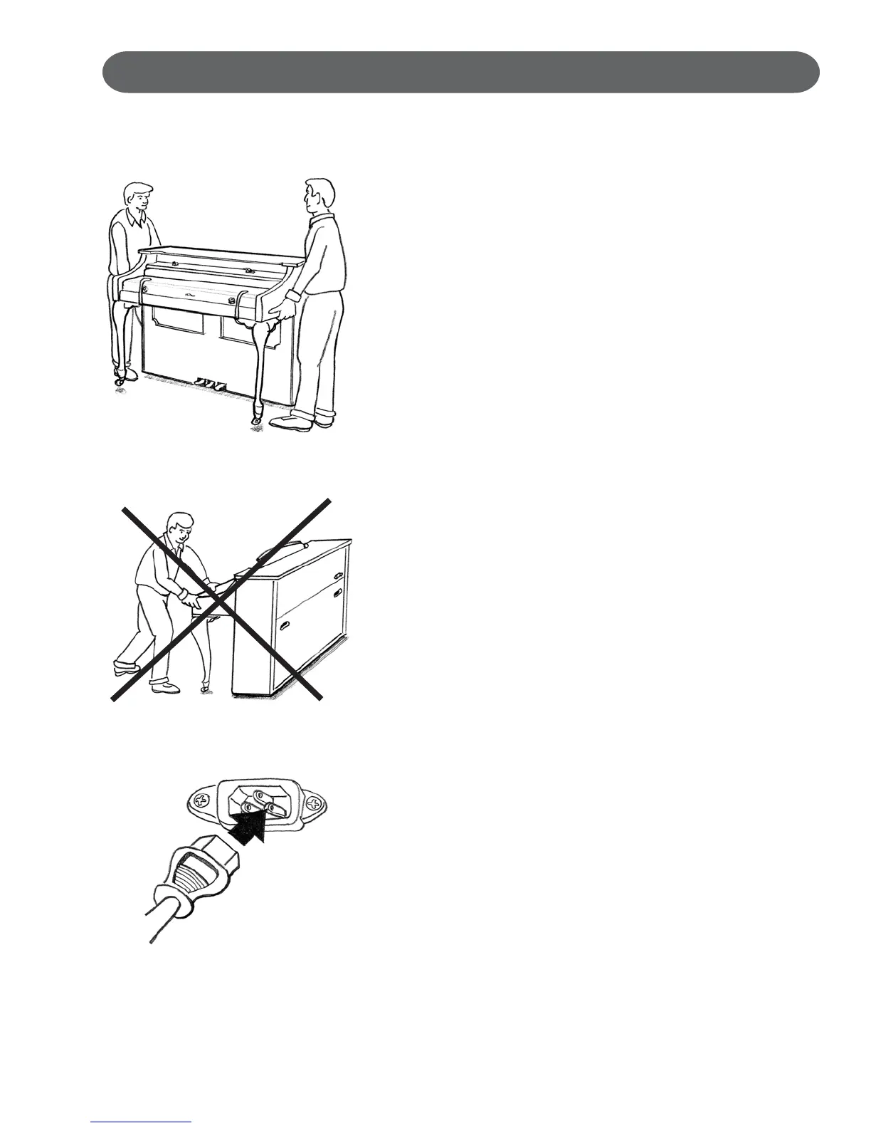 DO NOT ROLL THE PIANO. The two front legs have decorative wheels.