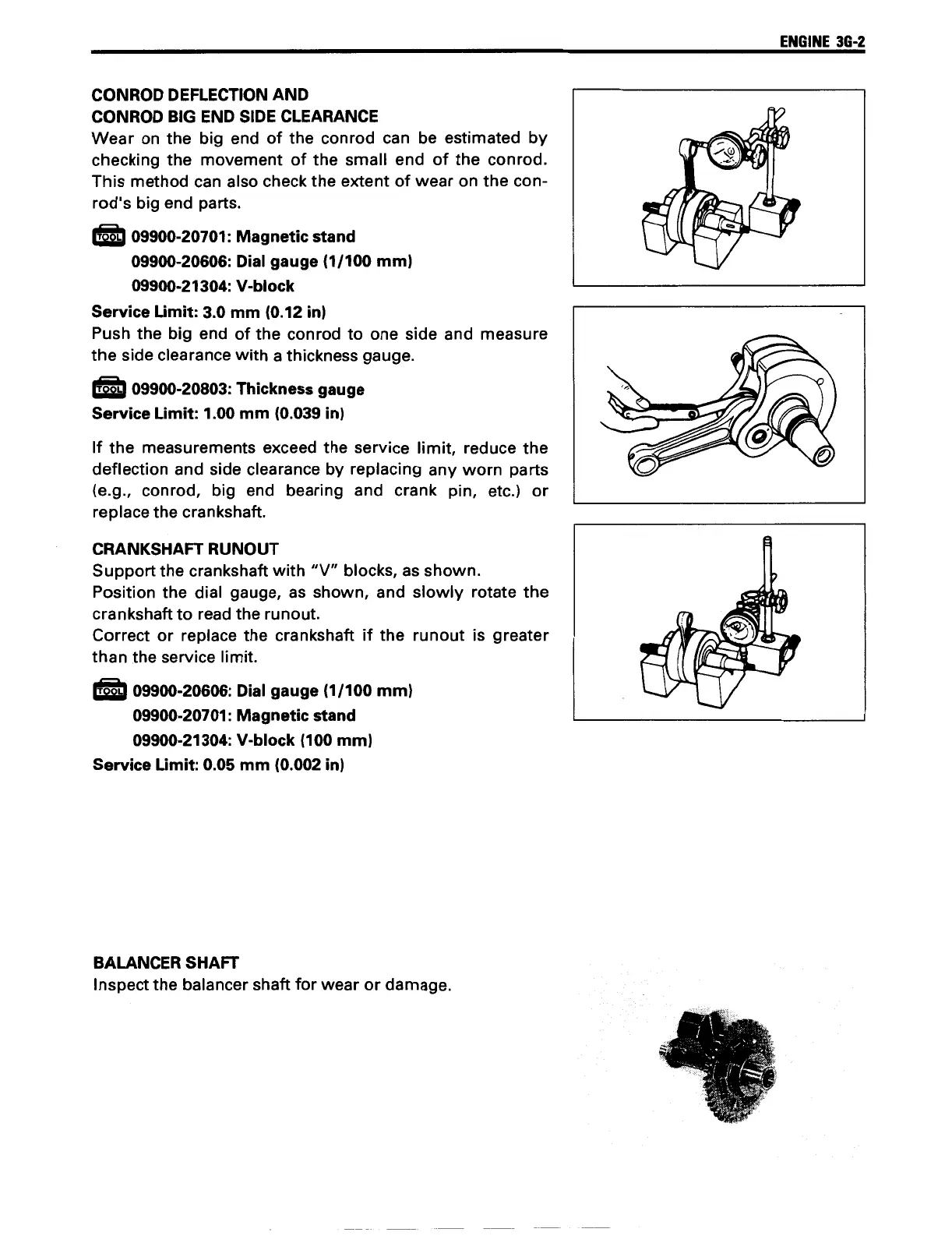 Suzuki freewind - Conrod Deflection and Conrod Big End Side Clearance; Crankshaft Runout;Balancer Shaft