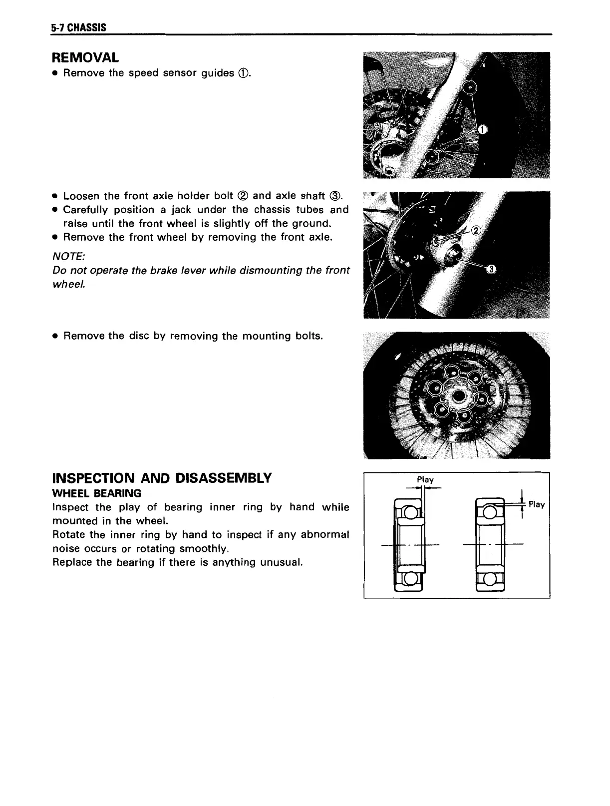 Suzuki freewind - Front Wheel Removal; Front Wheel Inspection and Disassembly; Wheel Bearing
