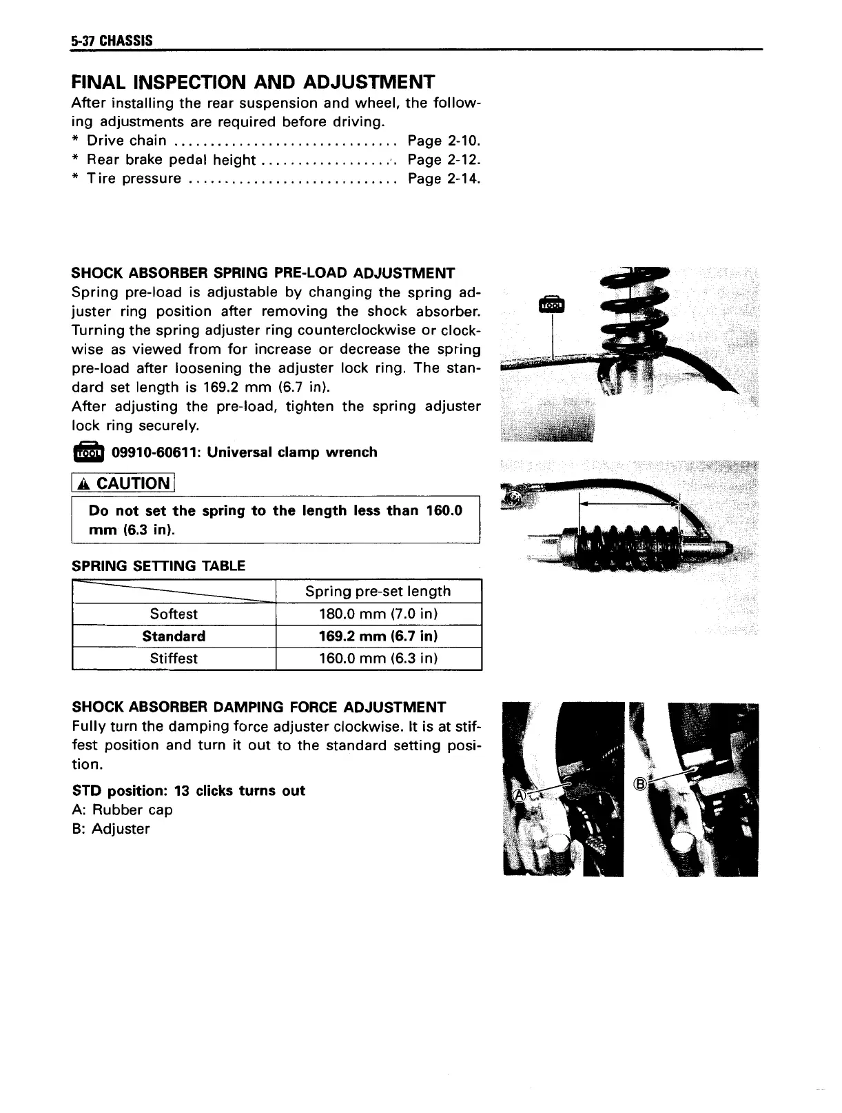 Suzuki freewind - Rear Swingarm and Suspension Final Inspection and Adjustment; Shock Absorber Spring Pre-Load Adjustment; Shock Absorber Damping Force Adjustment