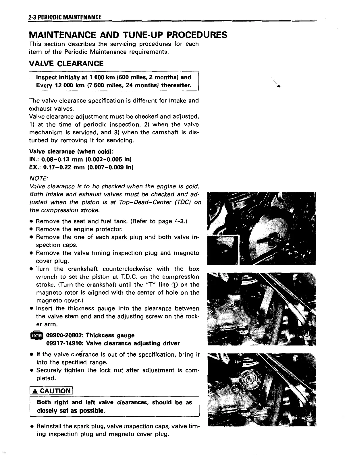 Suzuki freewind - Maintenance and Tune-Up Procedures; Valve Clearance