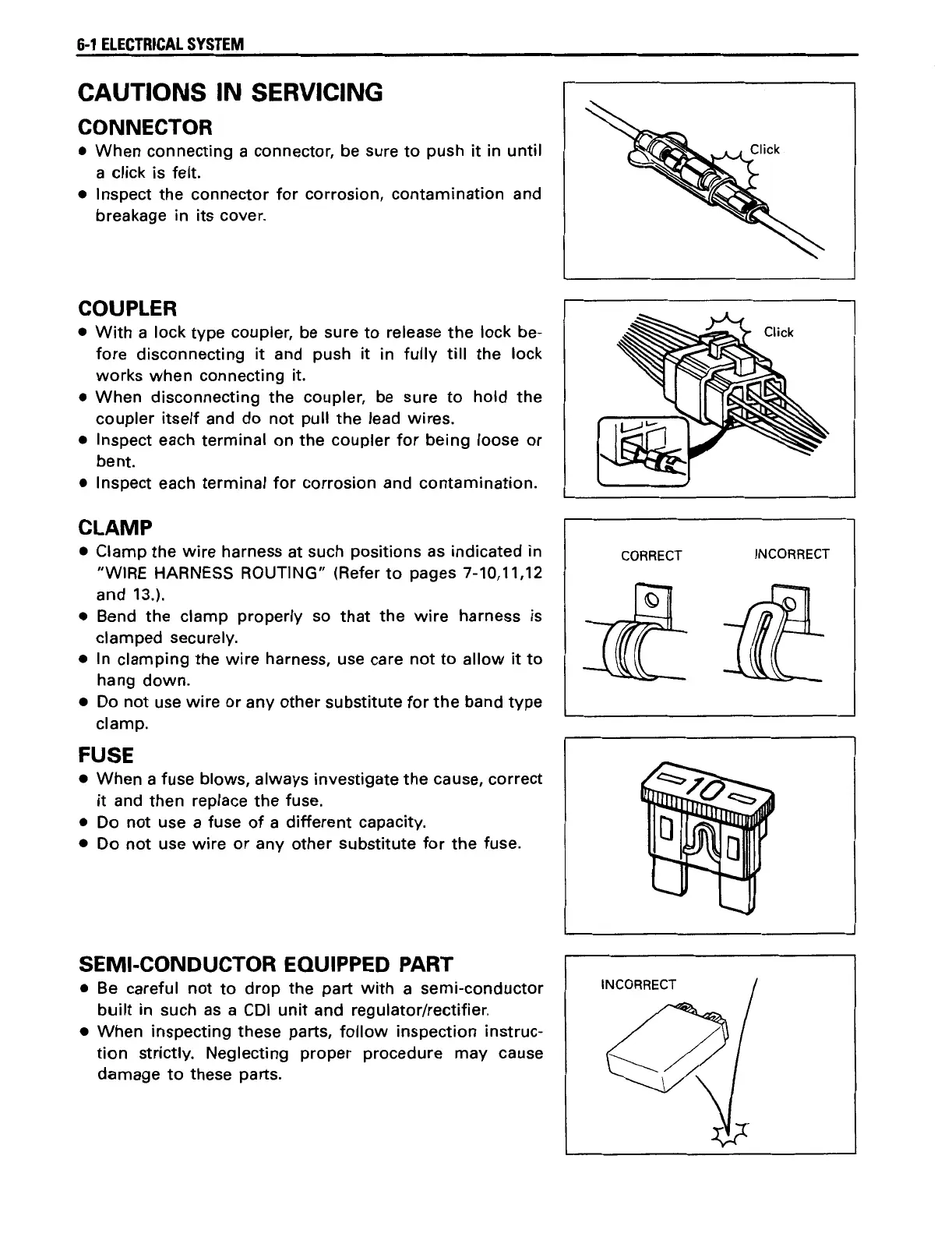 Suzuki freewind - Cautions in Servicing the Electrical System; Connector, Coupler, Clamp, Fuse, Semi-Conductor Equipped Part