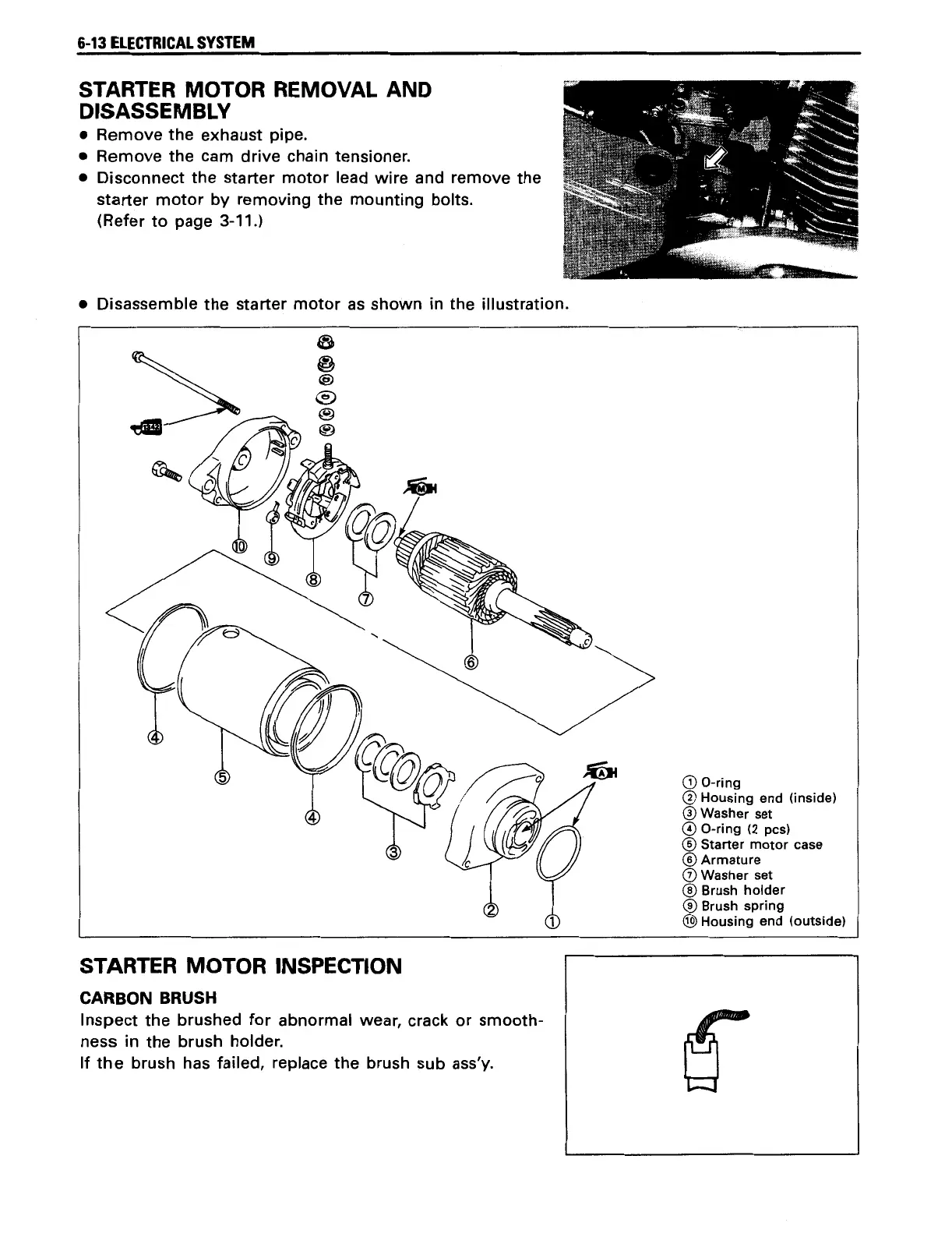 Suzuki freewind - Starter Motor Removal and Disassembly; Starter Motor Inspection; Carbon Brush Inspection