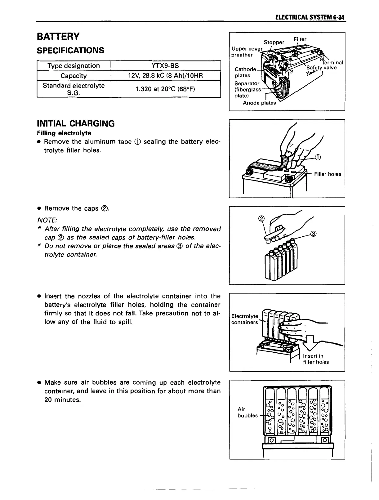 Suzuki freewind - Battery Specifications; Battery Initial Charging
