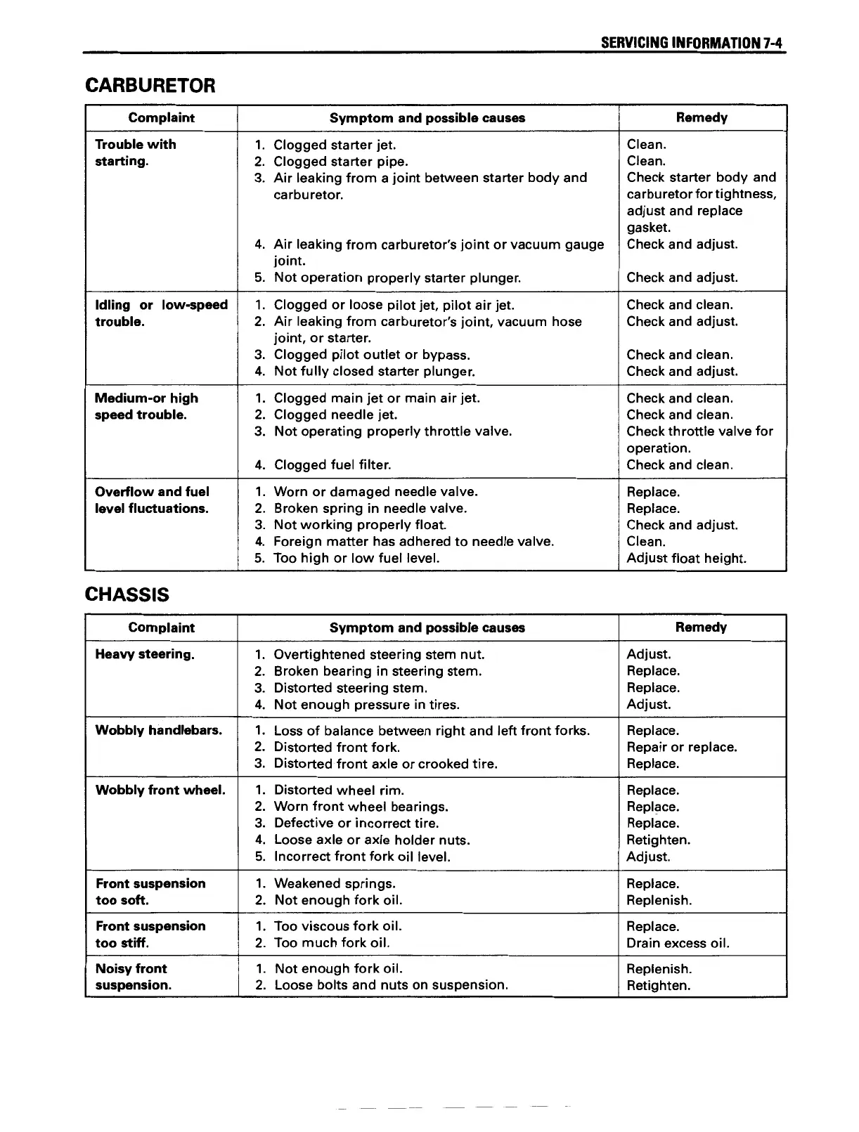 Suzuki freewind - Troubleshooting - Carburetor; Troubleshooting - Chassis