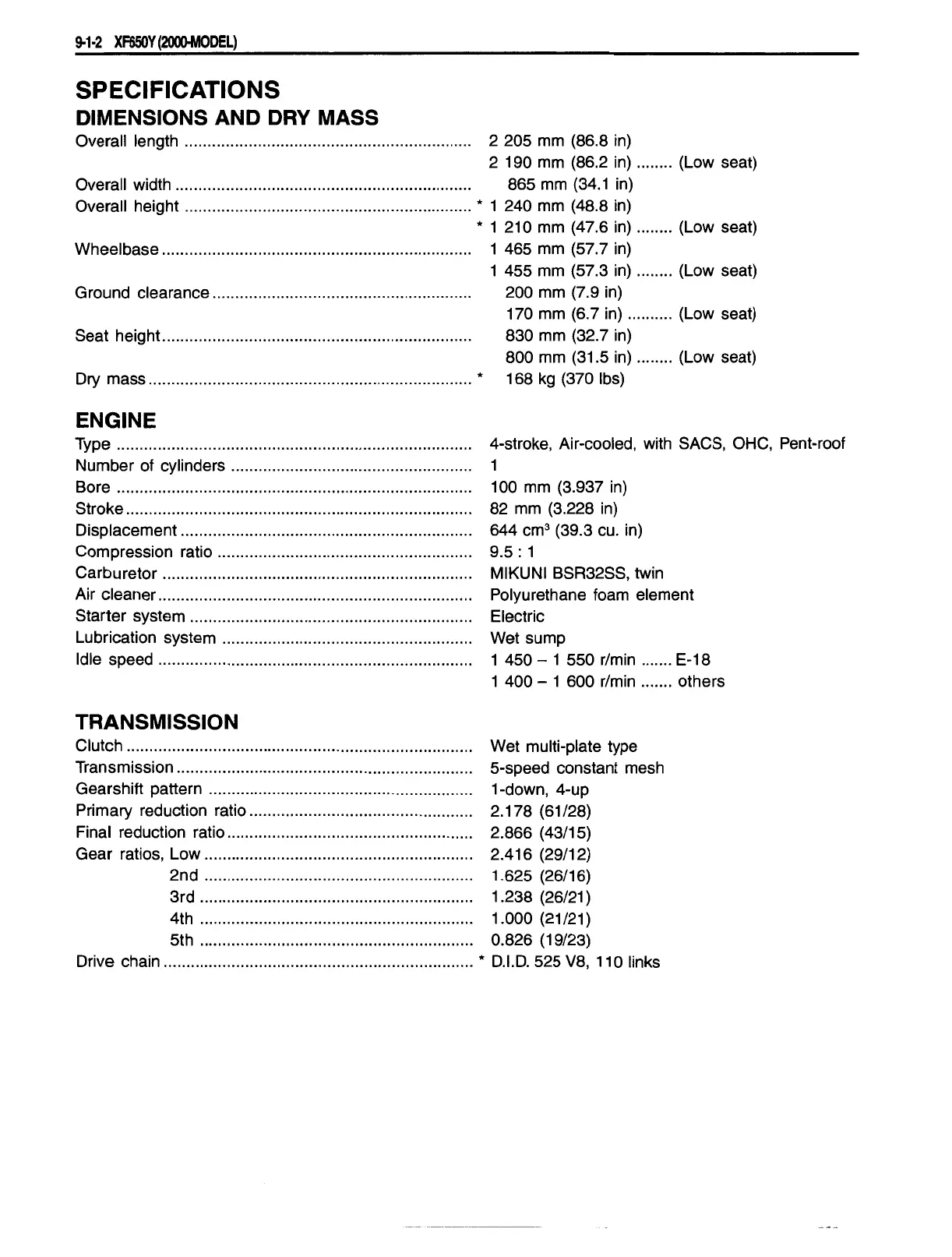 Suzuki freewind - XF650 Y (2000-Model) Specifications - Dimensions and Dry Mass; XF650 Y (2000-Model) Specifications - Engine;Transmission