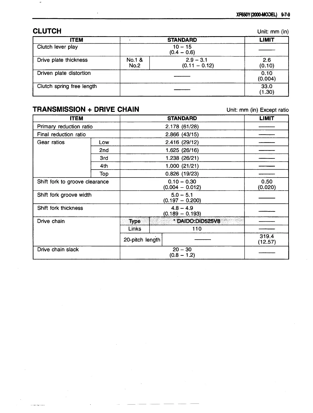 Suzuki freewind - XF650 Y (2000-Model) Service Data - Clutch;Transmission + Drive Chain