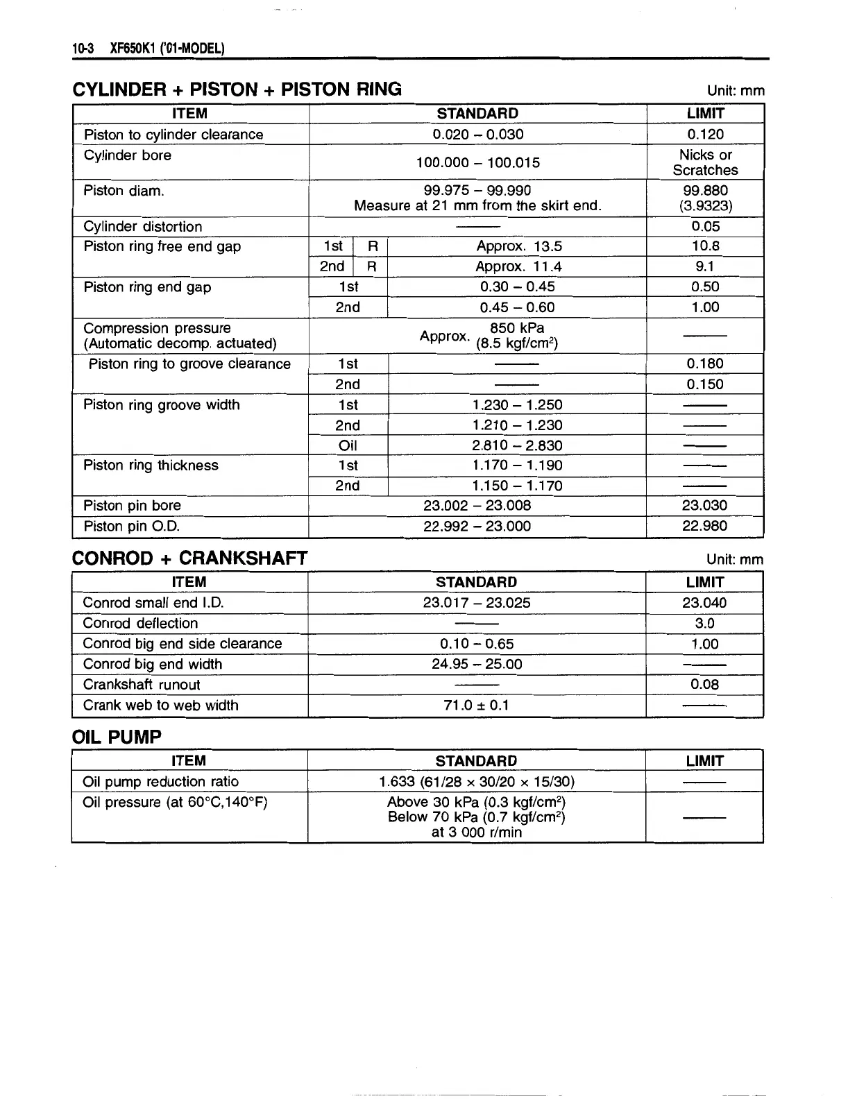 Suzuki freewind - XF650 K1 (01-Model) Service Data - Cylinder + Piston + Piston Ring;Conrod + Crankshaft;Oil Pump