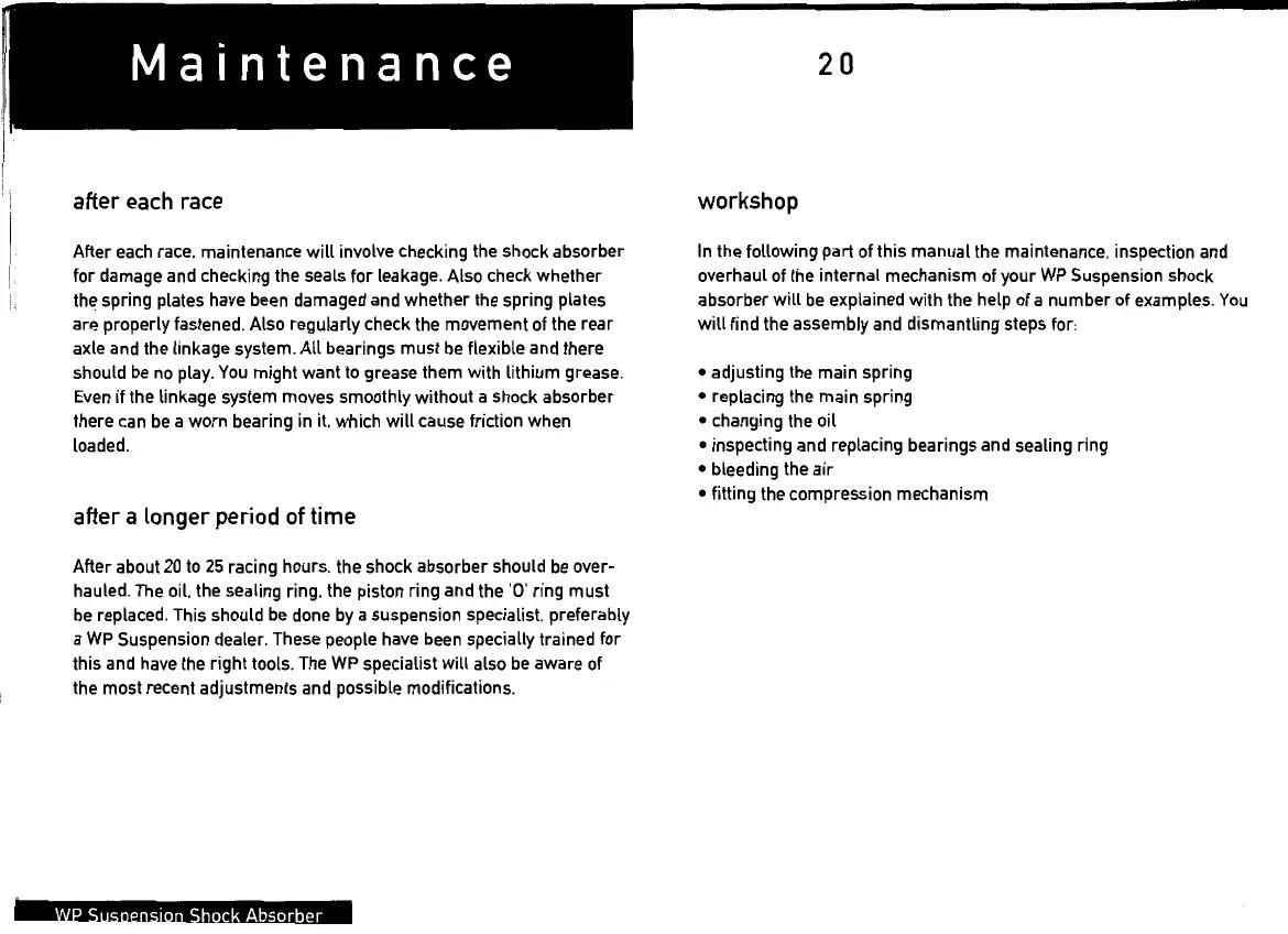 Suzuki freewind - WP Suspension Shock Absorber Maintenance; After each Race;Longer Period of Time; Workshop