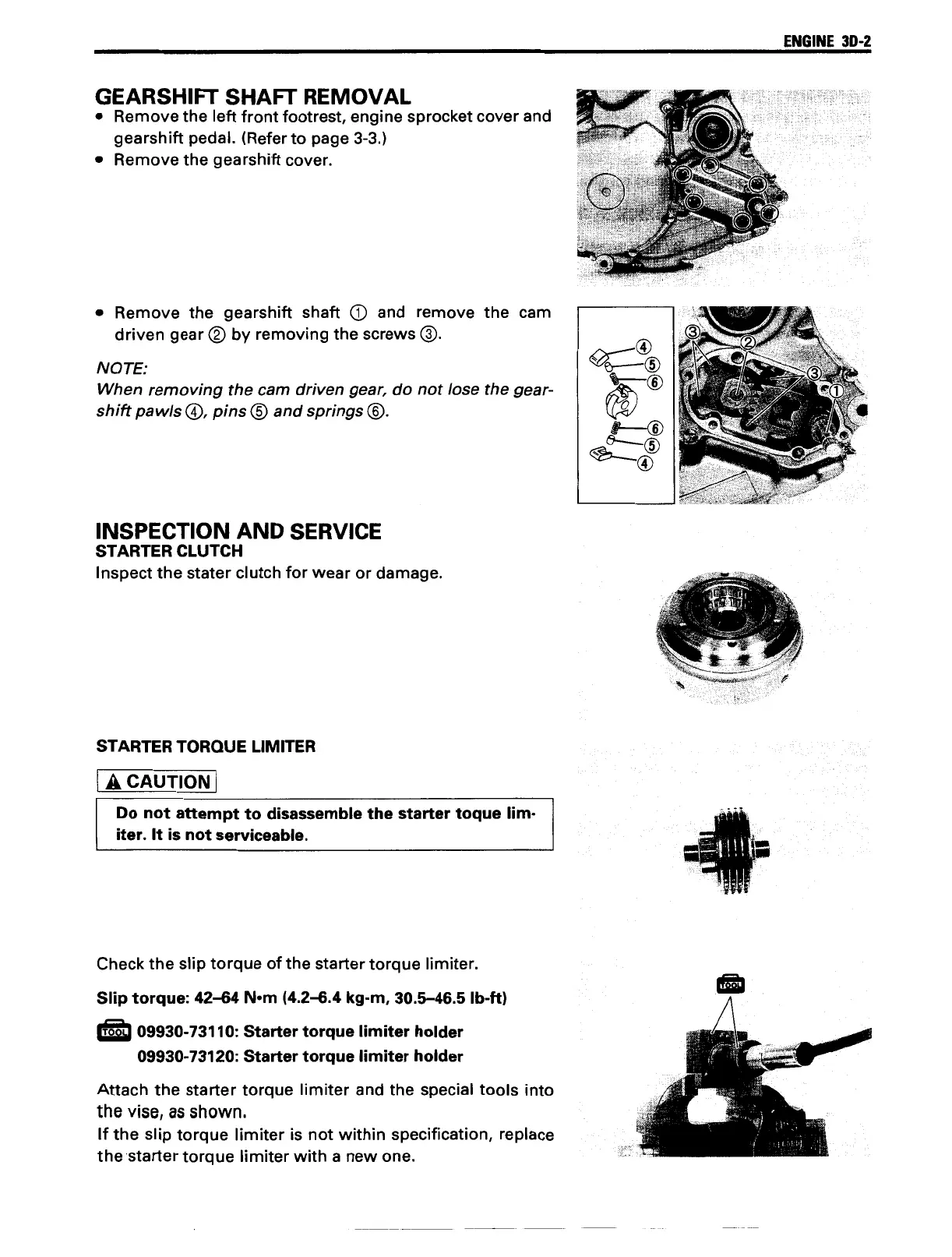 Suzuki freewind - Gearshift Shaft Removal; Starter Clutch Inspection; Starter Torque Limiter