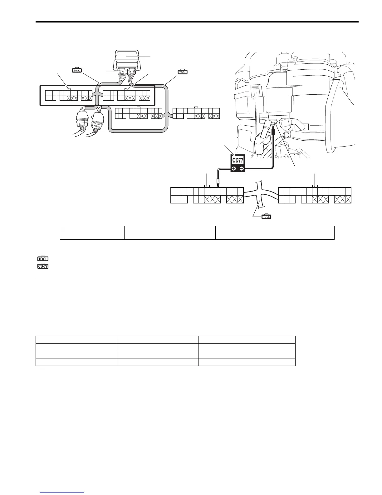 2) Connect the test cord between the ECM and wire harness as shown in figure, then turn ignition switch “ON”.