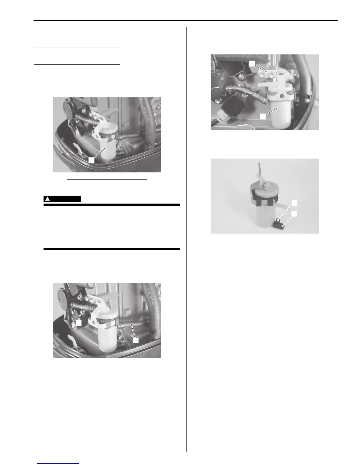 7) Connect the fuel inlet and outlet hose to fuel filter,