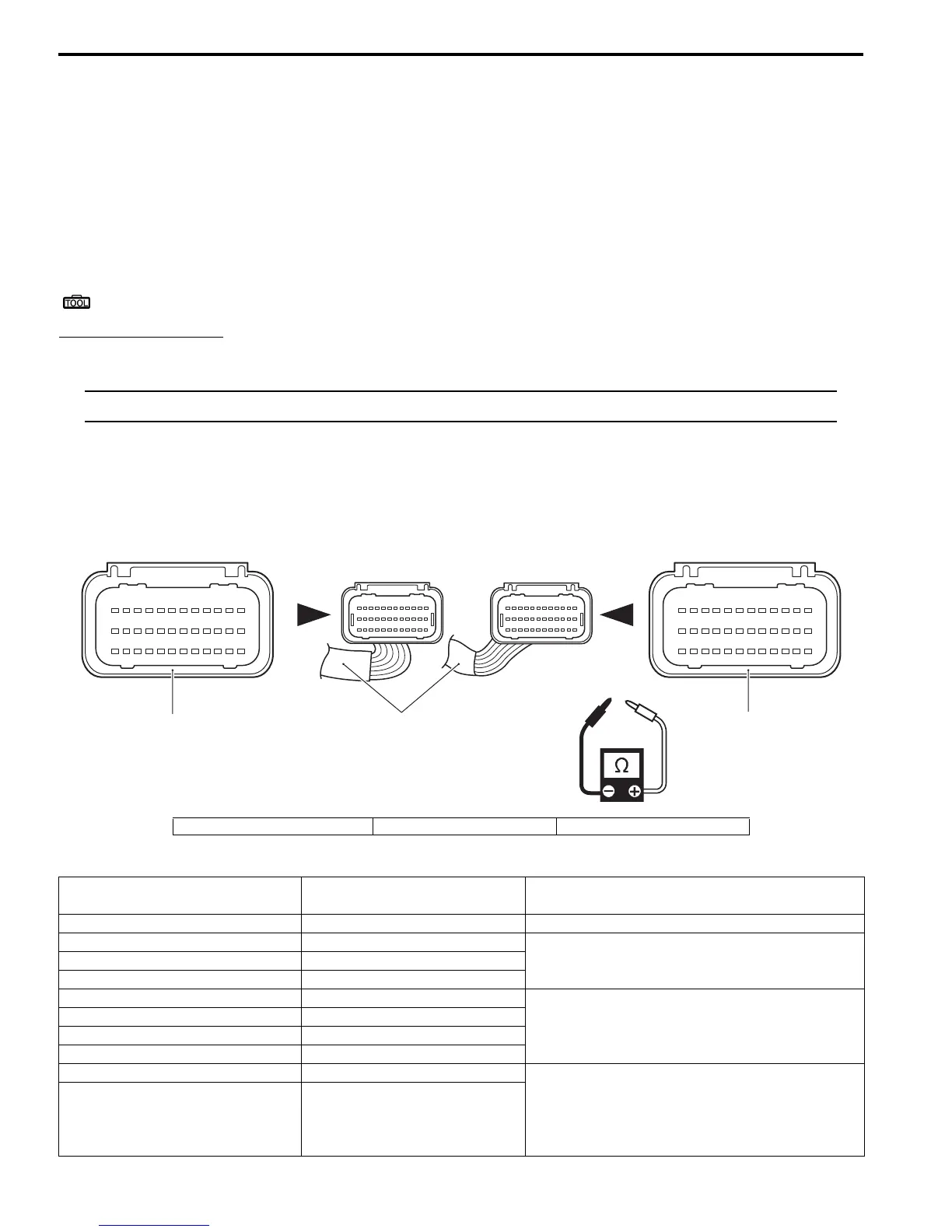 4) Connect the tester probes to terminal (wire harness side) and measure resistance according to the “Resistance