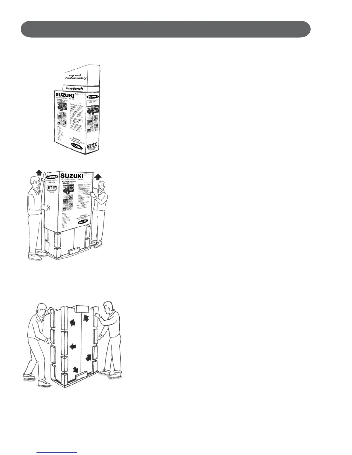 • Medium Carton: 3 piano legs and piano pedal assembly.