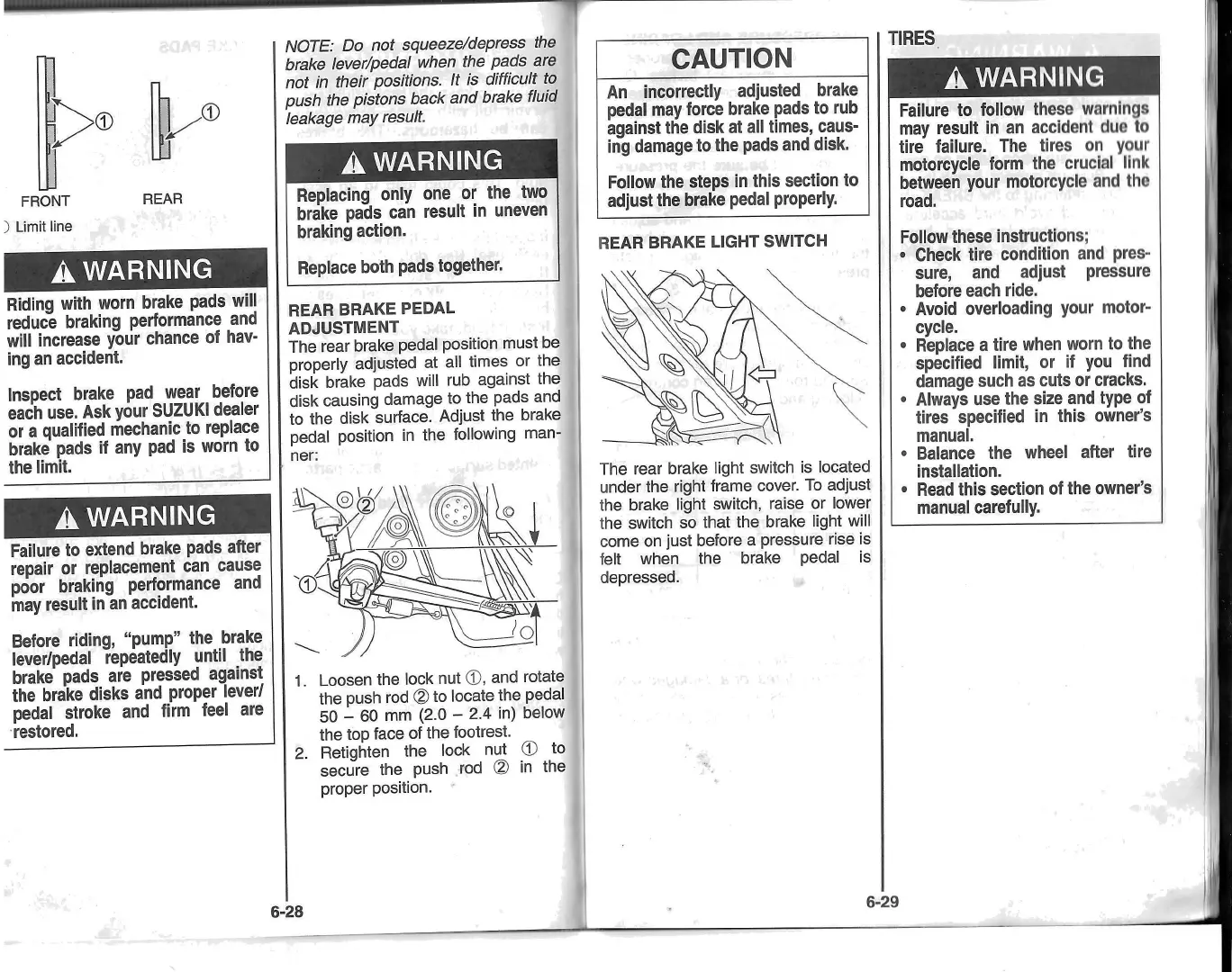 Suzuki GSF1250 - Tires; Rear Brake Light Switch; Rear Brake Pedal Adjustment