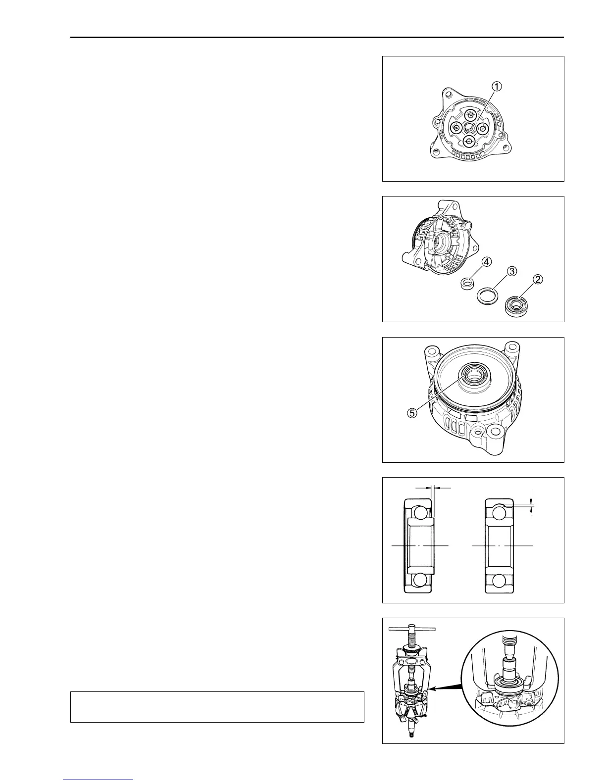 • Remove the bearing 2, washer 3 and spacer 4.