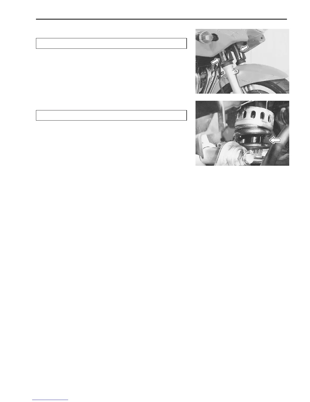 Inspect the front fork for oil leakage, scoring or scratches on the