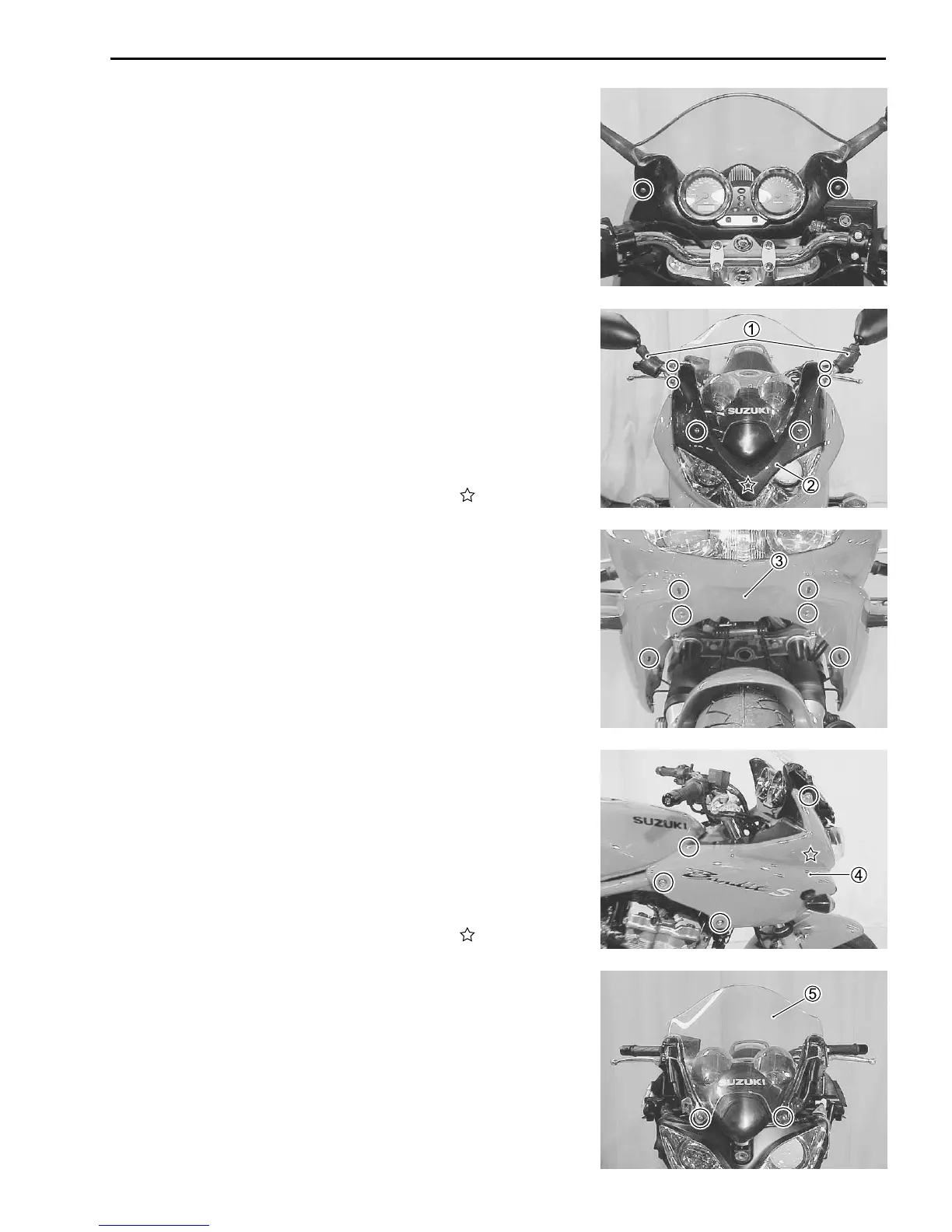 Remove the rear view mirrors 1 and the front cowling 2.