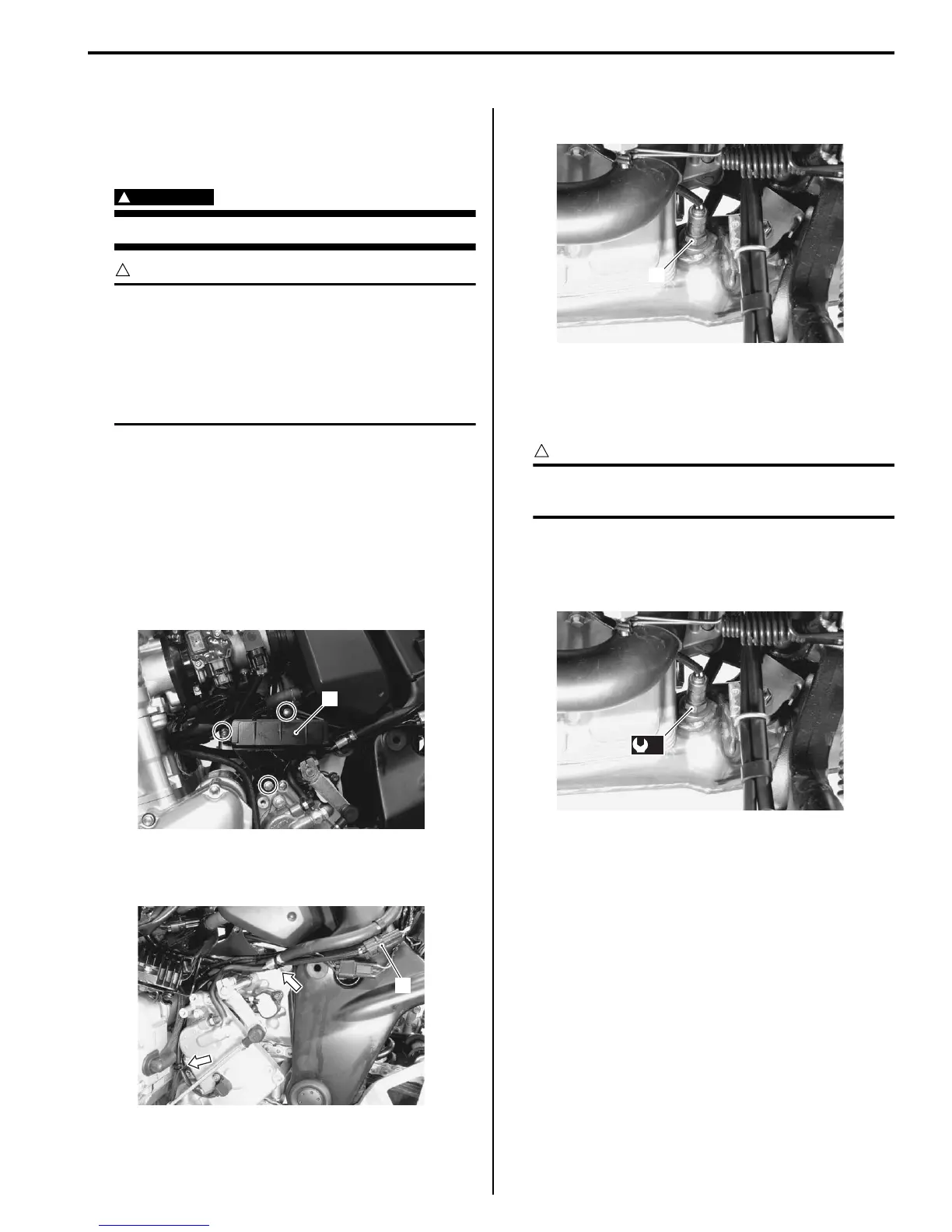 1) Remove the left frame cover. Refer to “Exterior Parts