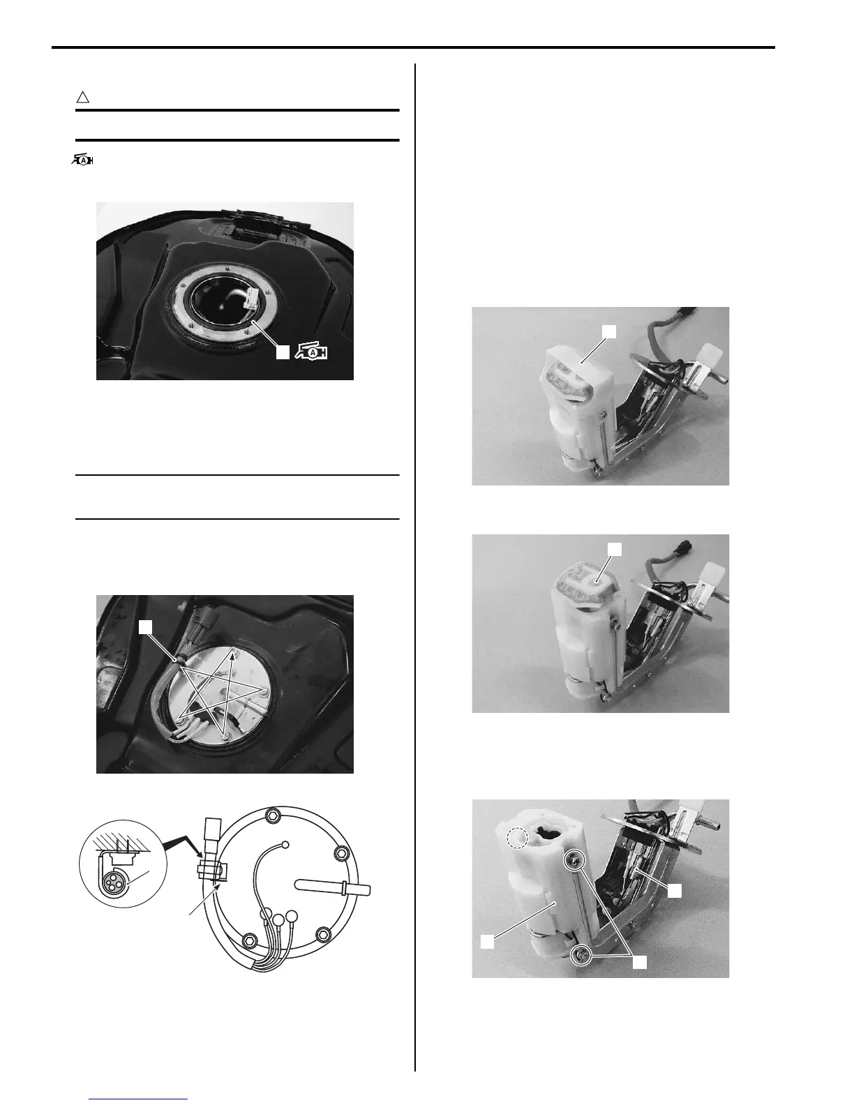 • When installing the fuel pump assembly, first tighten