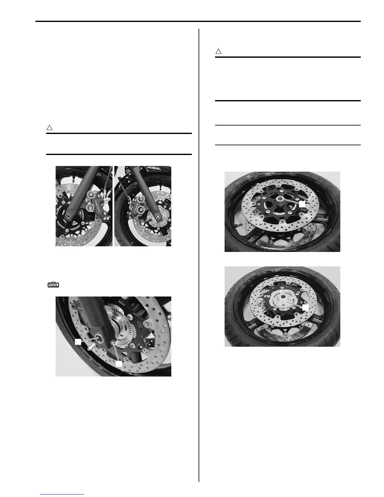 2) Remove the brake calipers. Refer to “Front Brake