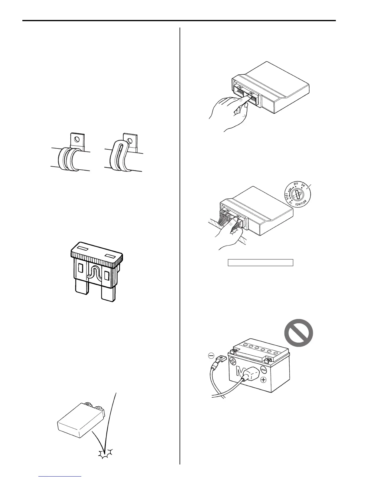 • In clamping the wire harness, use care not to allow it