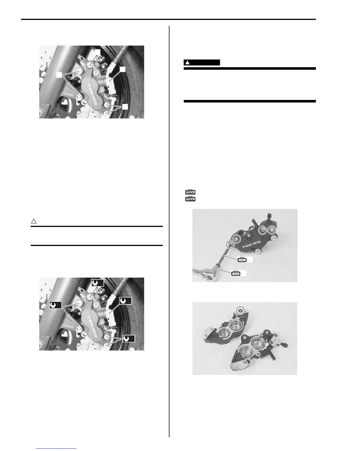 1) Remove the brake pads. Refer to “Front Brake Pad